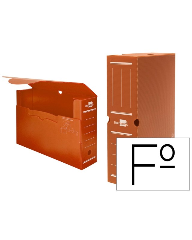 Caja archivo definitivo plastico liderpapel lomo 100 mm marron 360x100x260 mm
