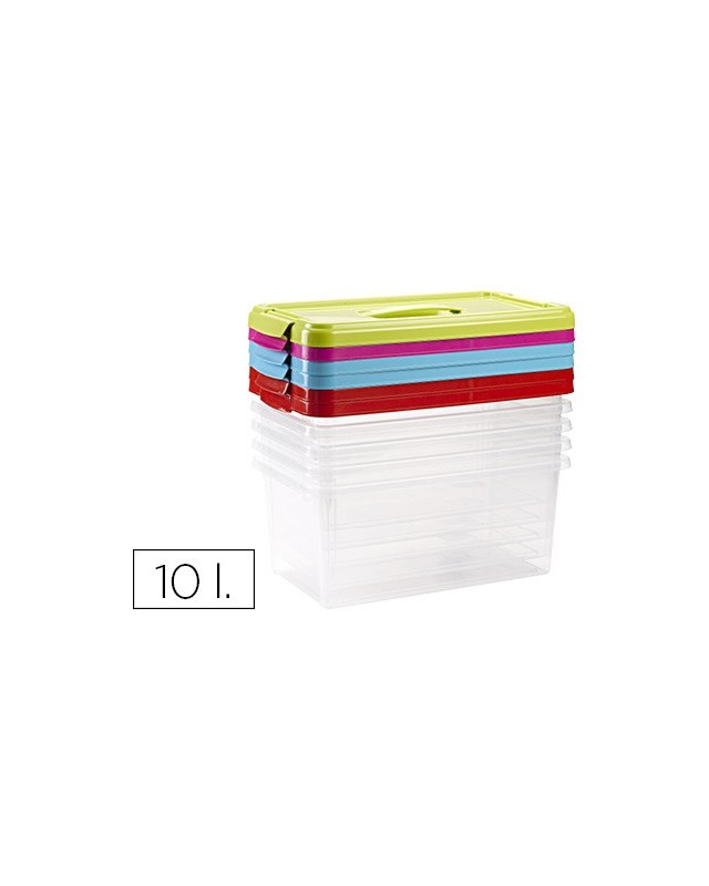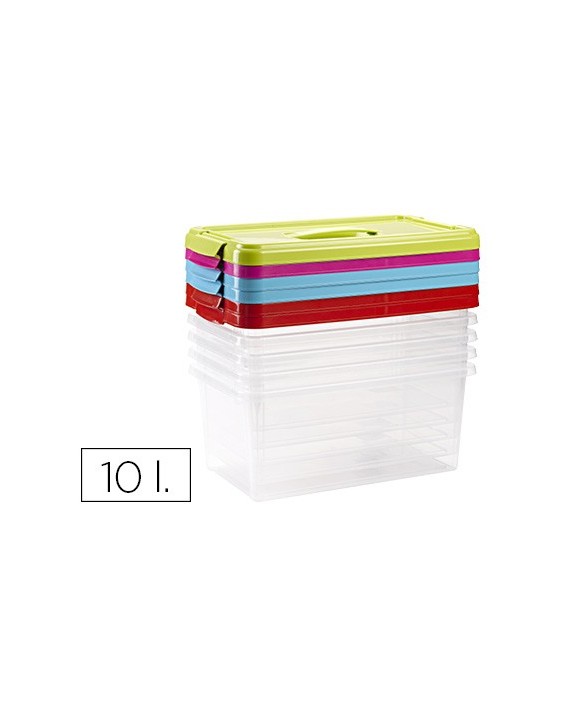 Caja multiusos plastico 10 l numero 24 tapa de color con asa 385x230x175 mm