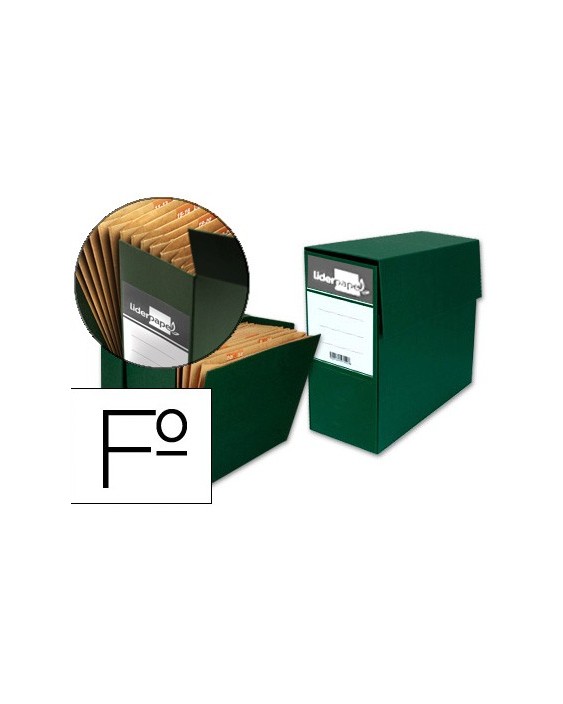 Caja transferencia liderpapel folio con fuelle lomo 110 mm color verde 380x110x260 mm