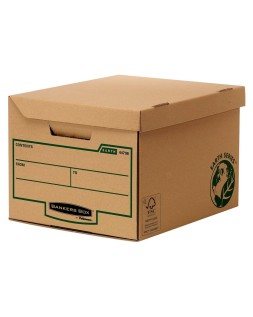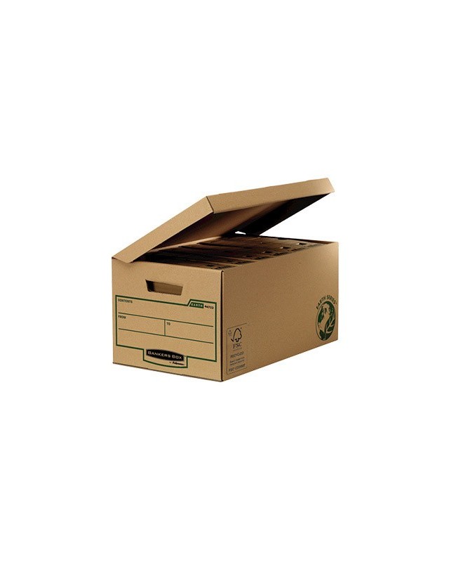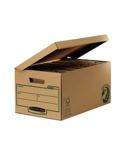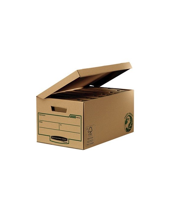 Archivo muy resistente, con doble capa de cartón en la base y triple capa de cartón en las asas. Fabricado en cartón 100% reciclado y 100% reciclable. Tapa integrada, asa de transporte, zona de etiquetaje y cierre con lengüeta. Capacidad para 6 cajas de archivo definitivo de 80 mm, 5 cajas de archivo definitivo de 100 mm, 7 archivadores de palanca DIN A4 ó 12 carpetas de anillas. Cartón de 375 g/m². Medidas: 560 x 293 x 390 mm. Interior: 545 x 378 x 287 mm.