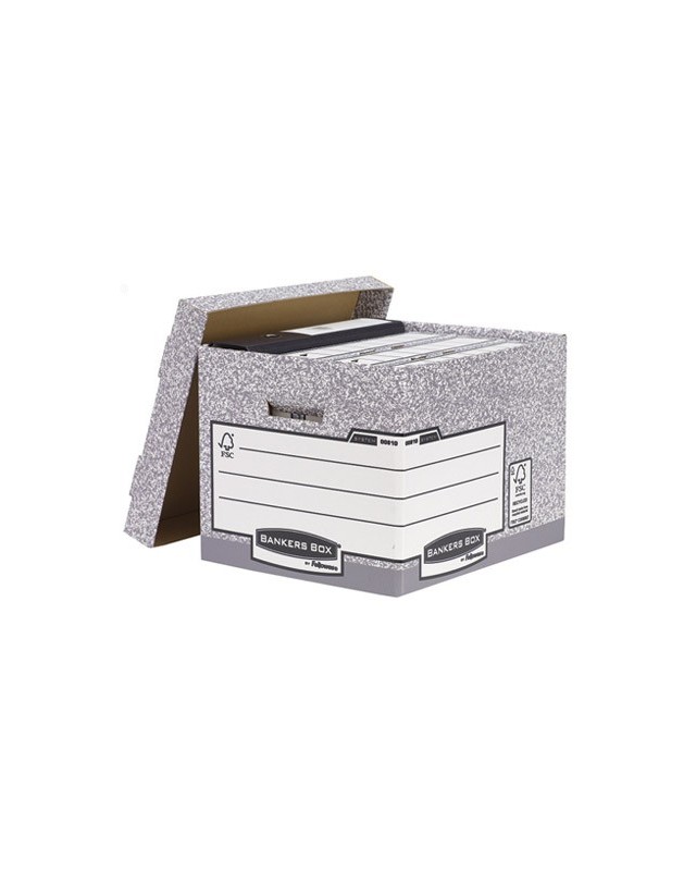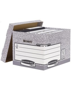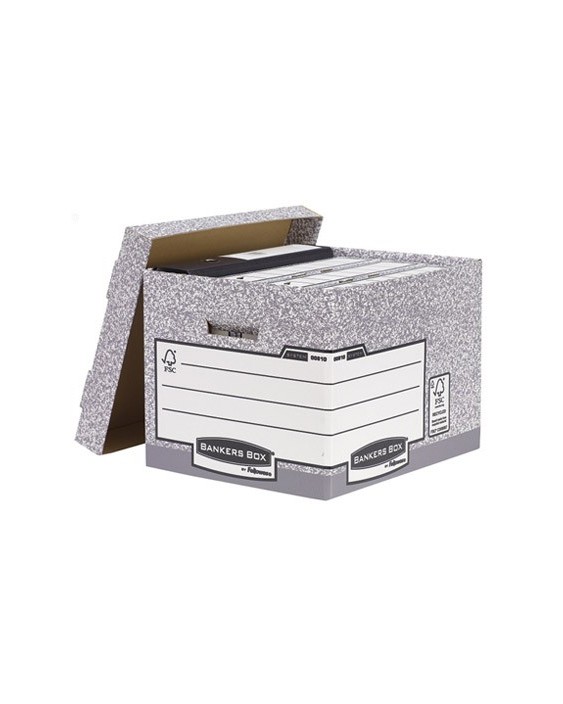 Contenedor fabricado en cartón 100% reciclado un 50% más resistente, con doble grosor en paredes y base. Montaje automático Fastfold . Apilable en altura hasta 4 cajas. 100 % reciclable. Capacidad para 4 cajas de archivo definitivo. Cartón de 515 g/m².
