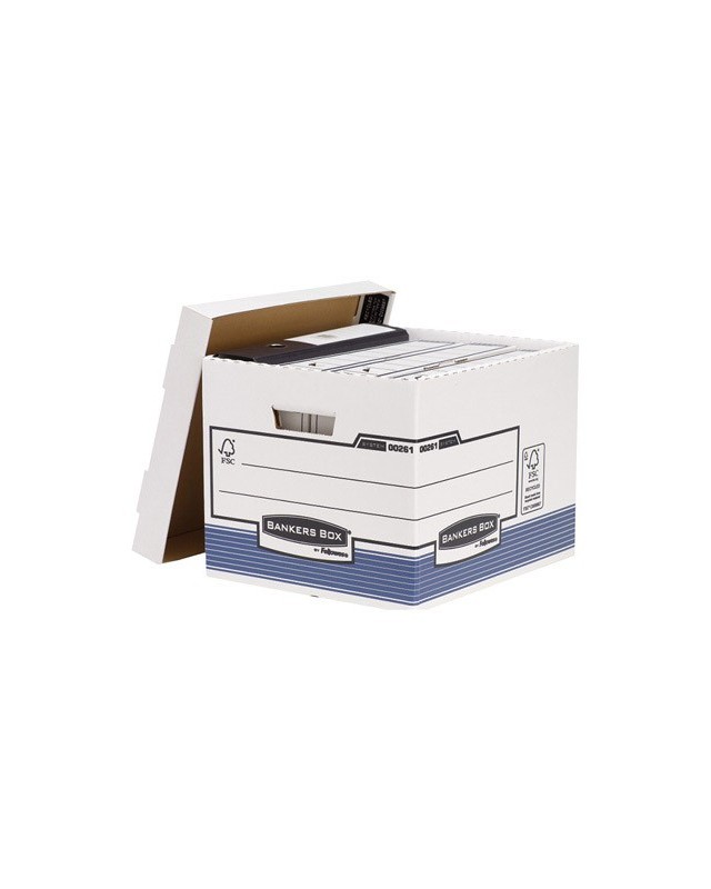 Contenedor fabricado en cartón 100% reciclado un 50% más resistente, con doble grosor en paredes y base. Montaje automático Fastfold . Apilable en altura hasta 4 cajas. 100 % reciclable. Capacidad para 4 cajas de archivo definitivo. Cartón de 515 g/m².