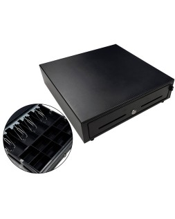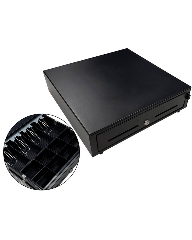 Cajon portamonedas 8 monederos 5 billeteros con llave manualnegro 410x415x110 mm