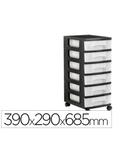 Cajonera archivo 2000 6 cajones transparente carcasa negra 6 litros con ruedas 390x290x685 mm
