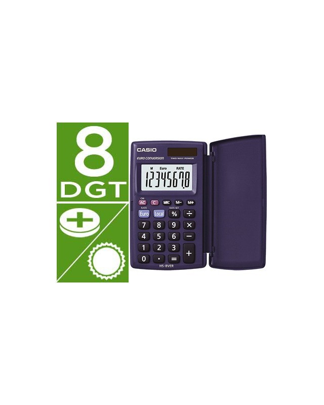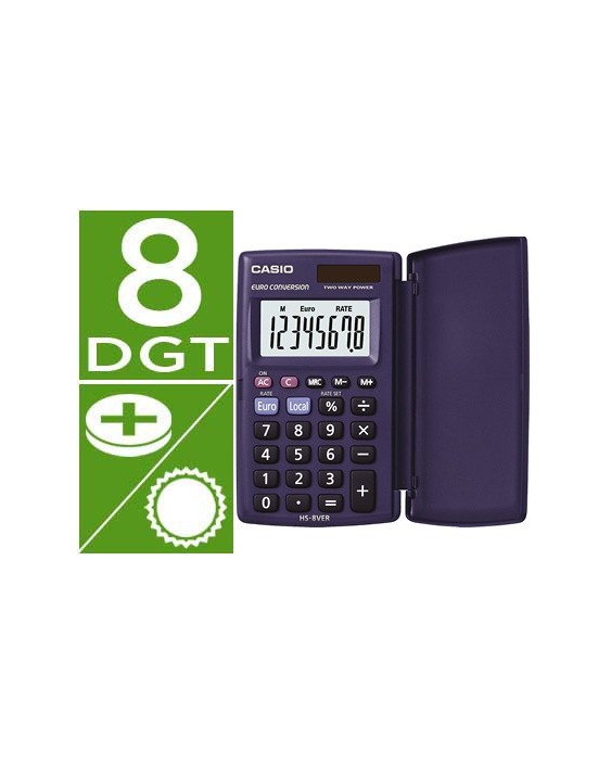 Calculadora casio hs-8ver bolsillo 8 digitos conversion moneda con tapa color azul
