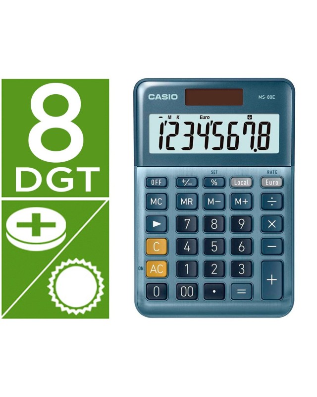 Calculadora casio ms-80e sobremesa 8 digitos tx +/- tecla doble cero color azul