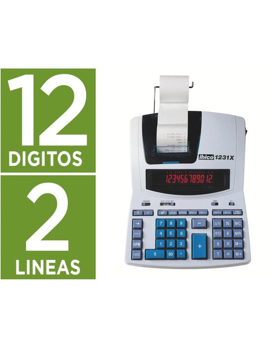 Con una pantalla altamente visible en dos colores de 12 dígitos, la Ibico 1231X es una calculadora de impresión profesional. Proporciona una impresión rápida en negro y rojo de 3,5 líneas por segundo y está diseñada con teclas de color claramente colocadas. Medidas: 300 x 230 x 75 mm.