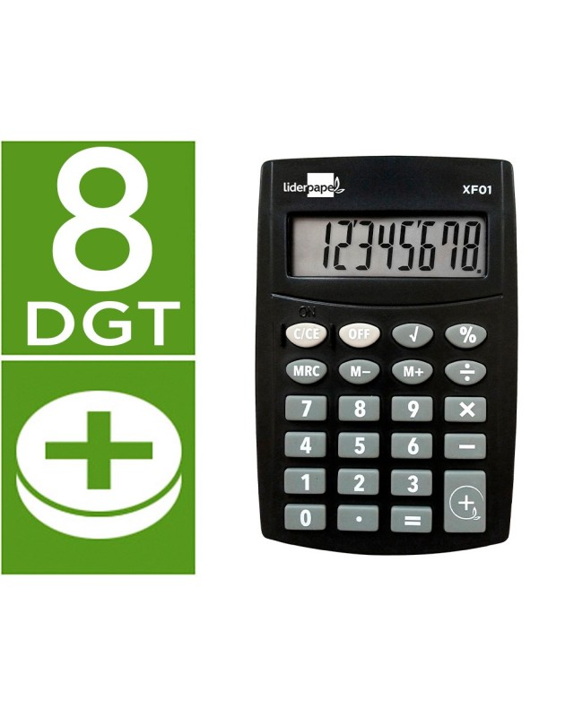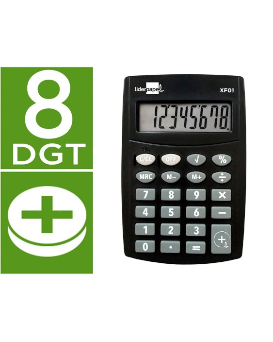 Calculadora liderpapel bolsillo xf01 8 digitos pilas color negro 99x64x9 mm