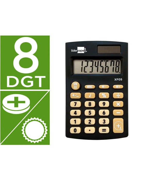 Calculadora liderpapel bolsillo xf05 8 digitos solar y pilas color negro 98x62x8 mm