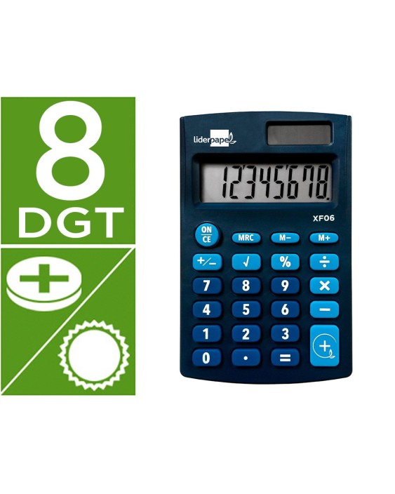 Calculadora liderpapel bolsillo xf06 8 digitos solar y pilas color azul 98x62x8 mm