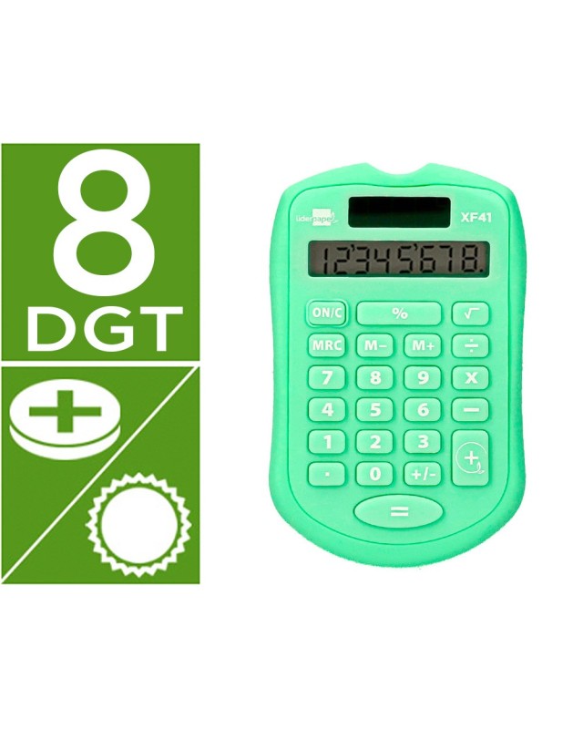 Calculadora liderpapel bolsillo xf42 8 digitos solar y pilas color verde 94x59,5x10,5mm