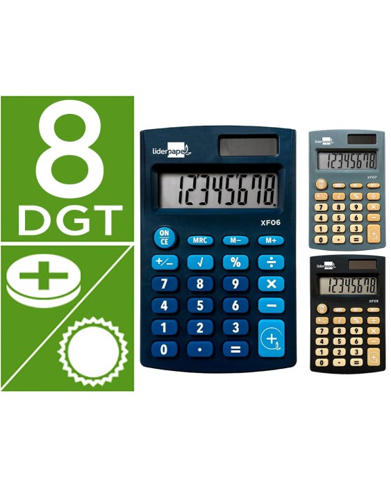 Calculadora liderpapel expositor 16 unidades colores bolsillo xf08 8 digitos solar y pilas 98x62x8 mm