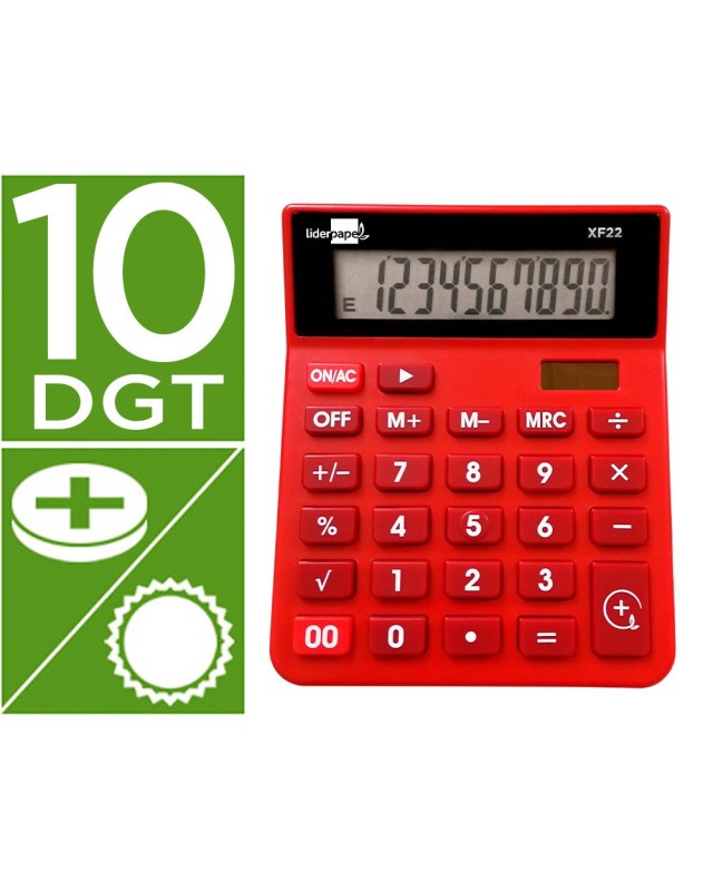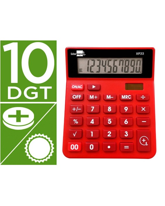 Calculadora liderpapel sobremesa xf22 10 digitos solar y pilas color rojo 127x105x24 mm