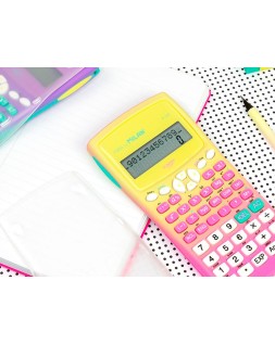 Resistente carcasa protectora translúcida. Pantalla de 2 líneas de lectura, de 10+2 dígitos. Visualización de expresión y resultado de manera simultánea. 240 funciones integradas, incluyendo 124 científicas. Funciones trigonométricas, parabólicas e hiperbólicas y cálculo de hasta 6 tipos de regresión diferentes, memoria para almacenamiento de medias. Alimentación: 2 pilas AAA (incluidas). Medidas: 167 x 84 x 19 mm. Peso: 280 g.