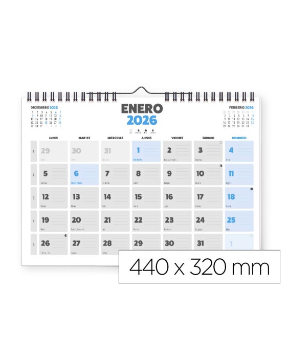 Calendario pared liderpapel clasico 2026 espiral 44x32 cm papel 128 gr