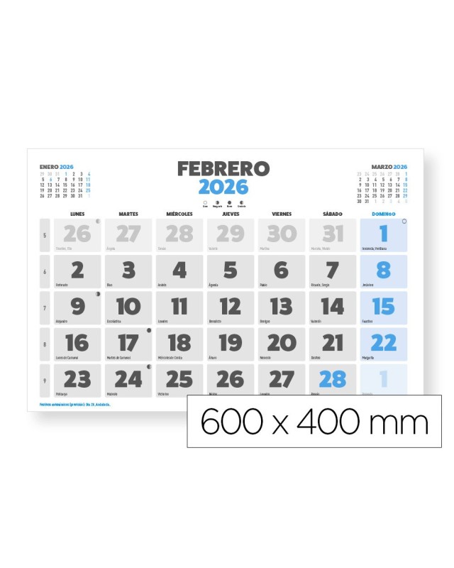 Calendario pared liderpapel clasico 2026 lomo engomado 60x40 cm papel 105 gr