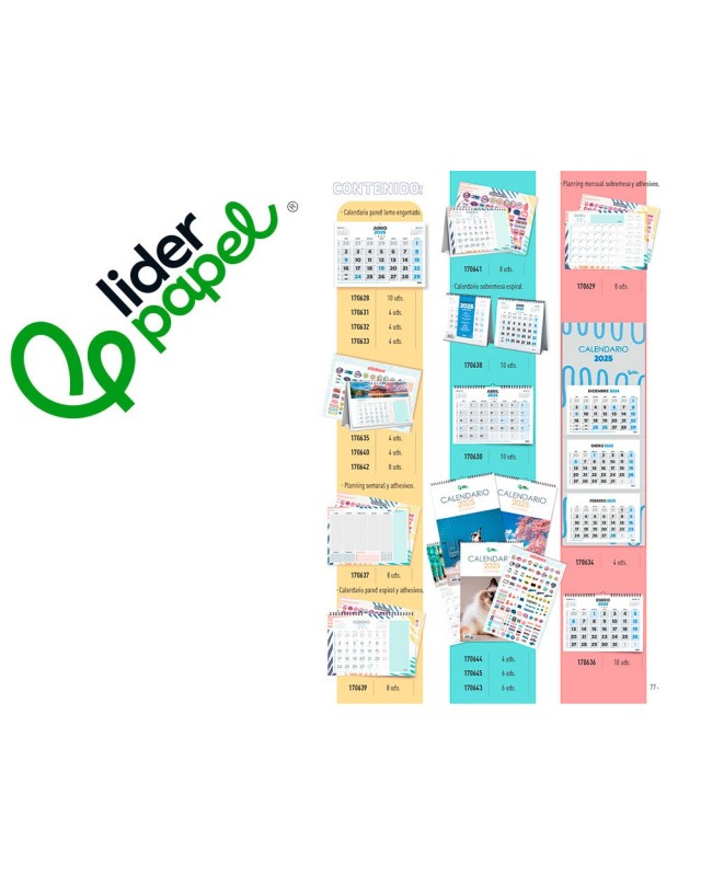 Calendarios liderpapel 2025 pack de 24 unidades diseños surtidos lote