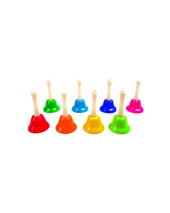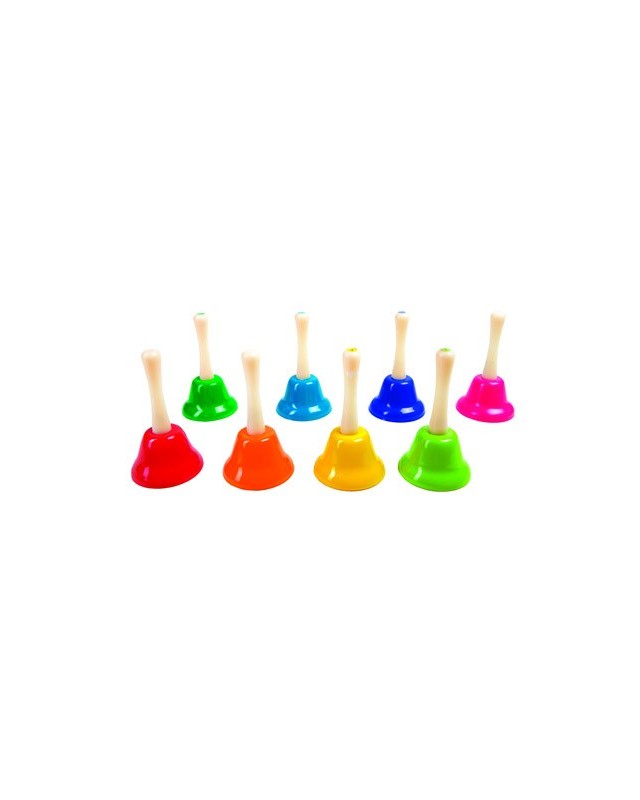 Campanita pequeña amaya de mano con mango tradicional escala diatonica set de 8 unidades colores surtidos
