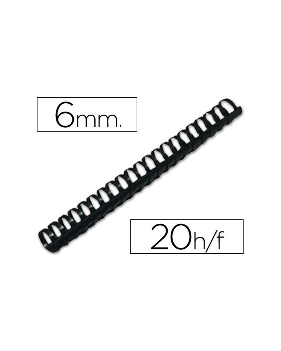 Canutillo q-connect redondo 6 mm plastico negro capacidad 20 hojas caja de 100 unidades
