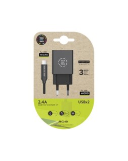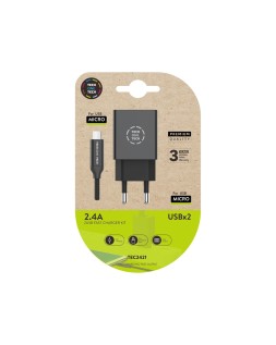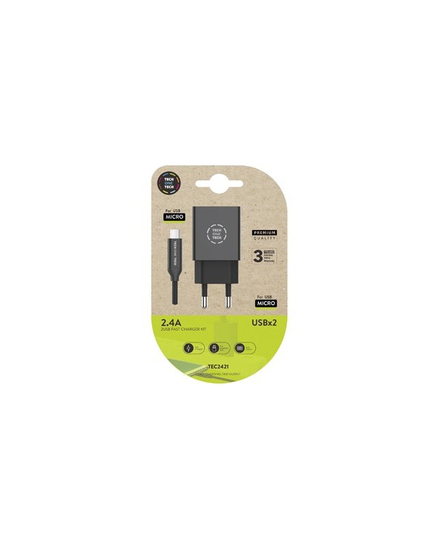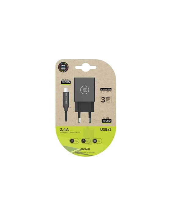 Cargador tech one tech 2.4 doble usb + cable braided nylon micro usb android longitud 1 mt color negro