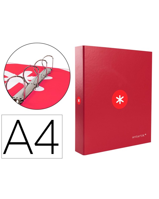 Carpeta 4 anillas 40 mm mixtas antartik a4 forrada color frambuesa