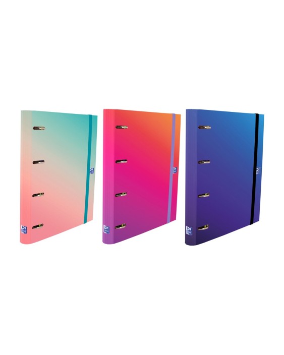 La carpeta con anillas Europeanbinder Gradient, equipada con 4 anillas D de 35 mm, es la opción perfecta para quienes buscan transportar sus apuntesde manera ordenada y con estilo. Su tapa extradura y acabado mate aportan un toque de diseño moderno, mientras que el lomo ergonómico facilita un t ransporte cómodo. Además, su ancho especial está diseñado para acomodar separadores y fundas. Disponible en tres atractivos modelos: Ocean, Sunset ySpace, esta carpeta cuenta con un cierre de goma elástica que combina con la tapa y la guarda, asegurando el contenido de forma segura. Incluye un recambio de calidad Optik Paper+ con recuadro en colores vivos y pautado horizontal, compatible con la aplicación Scribzee, lo que permite una organganización digital eficiente. También cuenta con