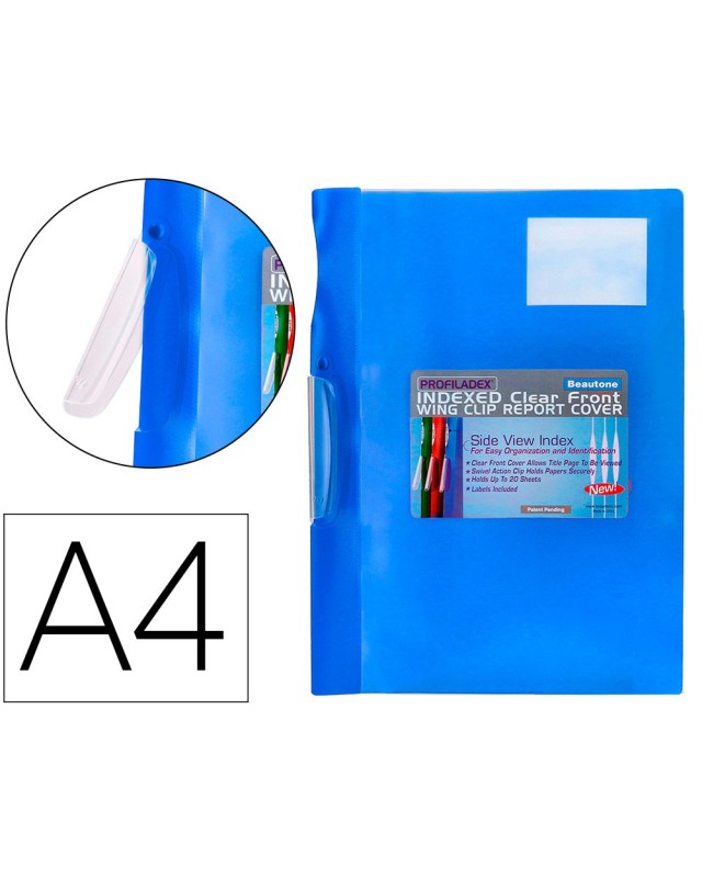 Carpeta beautone dossier pinza lateral 48382 polipropildin-a4 azul pinza giratoria -pack de 10 retractilado