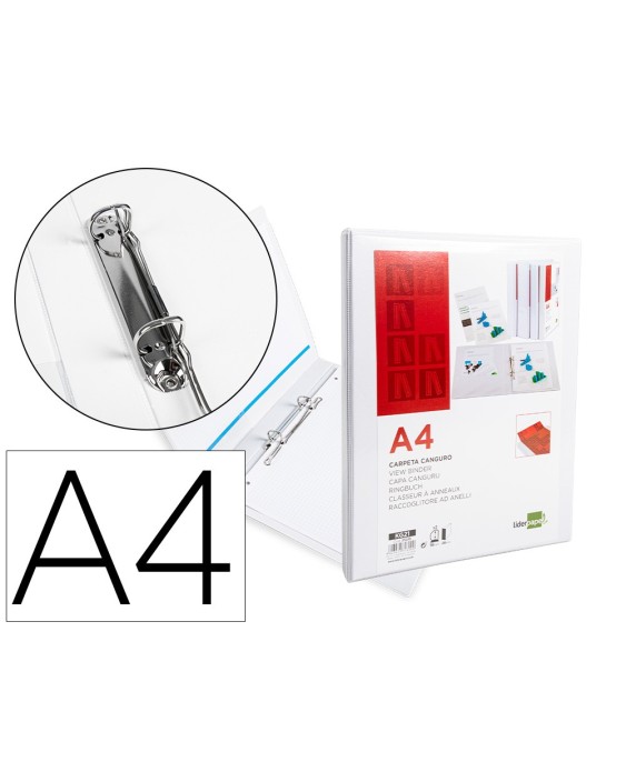 Carpeta canguro 2 anillas mixtas 16mm liderpapel a4 plastico color blanco