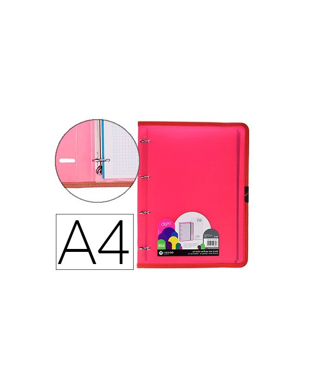 Carpeta carchivo dune 4 anillas 20 mm polipropileno rigido din a4 con recambio 100 h con gomilla y ribete