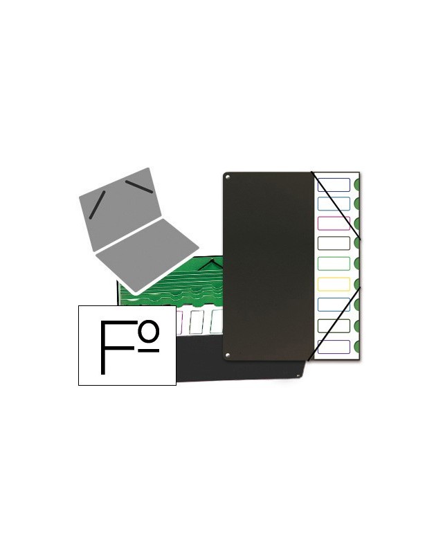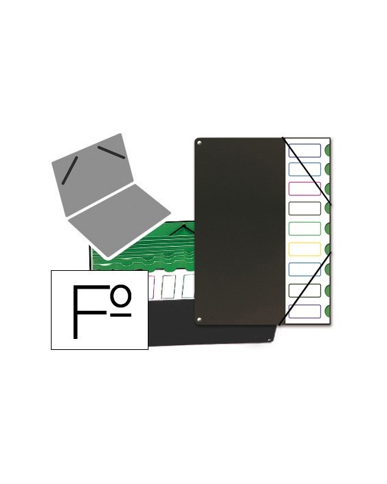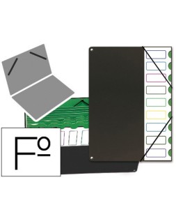 Carpeta clasificador tapa de plastico pardo folio 9 departamentos negro