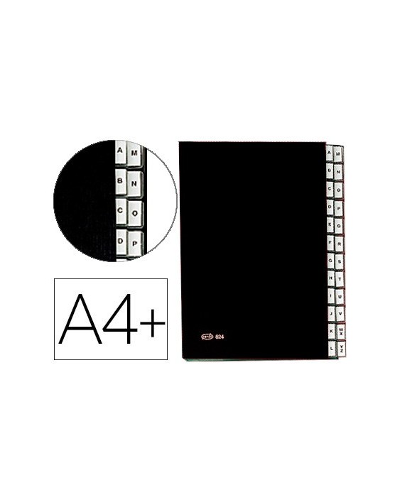 Carpeta clasificadora fuelle pardo carton compacto folio 24 departamentos visor doble personalizables color negro