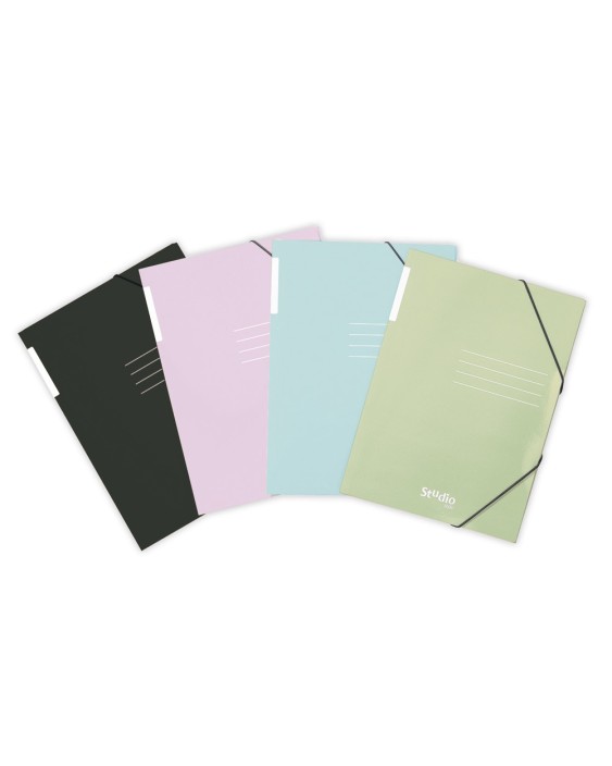 Carpeta con gomas pardo tres solapas din a4 carton pastel expositor de 24 unidades colores surtidos