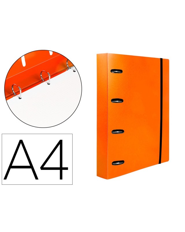 Carpeta con recambio liderpapel a4 cuadro 5mm 100 hojas 80g polipropileno 4 anillas 40mm naranja fluor