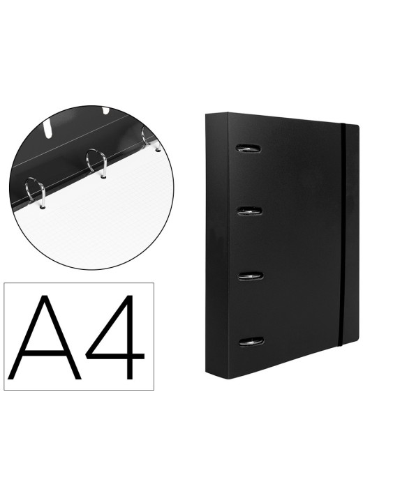 Carpeta con recambio liderpapel a4 cuadro 5mm 100 hojas 80g polipropileno 4 anillas 40mm negro opaco