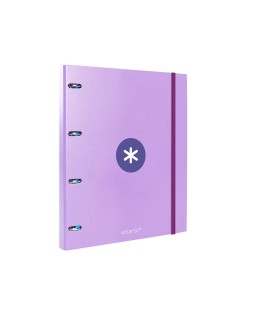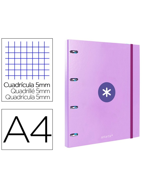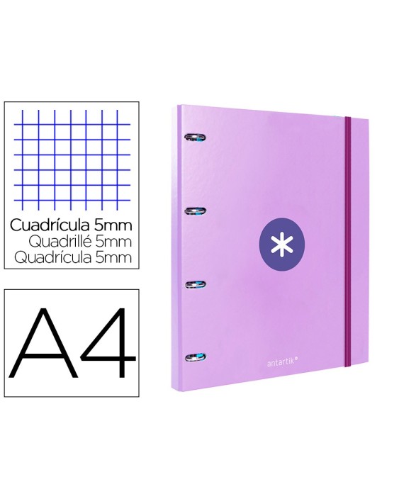 Carpeta con recambio antartik a4 cuadro 5mm forrada 4 anillas 25mm redondas color lavanda