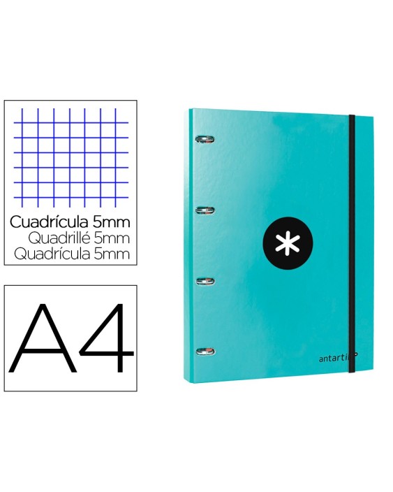 Carpeta con recambio antartik a4 cuadro 5mm forrada 4 anillas 25mm redondas color menta