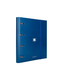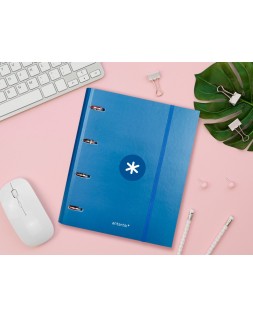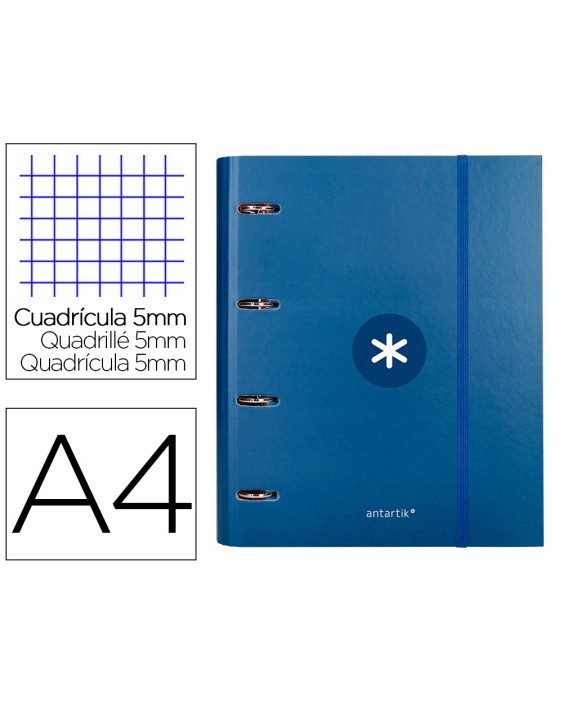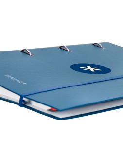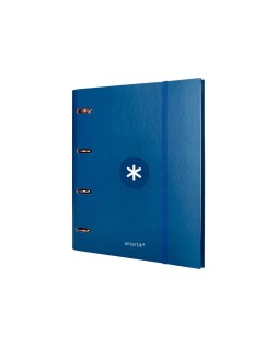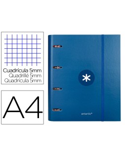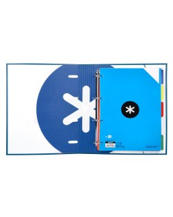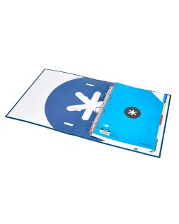 TAPA DE CARTÓN FORRADO DE 1,75 MM DE ESPESOR. FORRADA EN PAPEL ESTUCADO MATE DE 135 G/M² IMPRESO. PLASTIFICADA MATE CON DETALLES BARNIZ UVI. 4 ANILLAS REDONDAS. CIERRE DE GOMILLA. CON RANURAS PARA ANILLAS. 100 HOJAS CON 5 BANDAS DE COLOR Y 4 TALADROS. PAPEL INTERIOR EXTRABLANCO DE 90 G/M². ULTR ASUAVE. CUADRÍCULA DE 5 MM. FORMATO DIN A4. GUARDA INTERIOR IMPRESA. LOMO REDONDO, CON SEPARADOR INTERIOR Y SOLAPA.