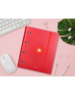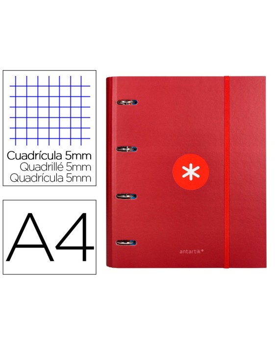 Carpeta con recambio antartik a4 cuadro 5mm forrada 4 anillas 40mm redondas con solapa color frambuesa
