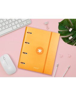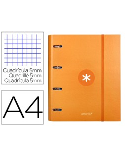 Carpeta con recambio antartik a4 cuadro 5mm forrada 4 anillas 40mm redondas con solapa color mostaza