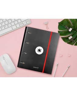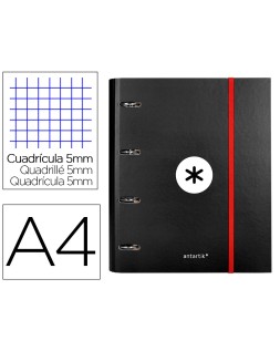 Carpeta con recambio antartik a4 cuadro 5mm forrada 4 anillas 40mm redondas con solapa color negro