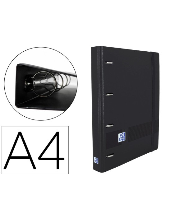Carpeta con 4 anillas de 35 mm. Tapas en Polyfoam extrarresistente y ligero. Lomo de 35 mm. Cierre con goma elástica a juego con la tapa. Incluye recambio de 100 hojas de papel Optik Paper de 90 g/m². Cuadrícula de 5 mm. Con 5 colores de banda. Bolsa portadocumentos en el interior. Para formatos DIN A4 y folio.