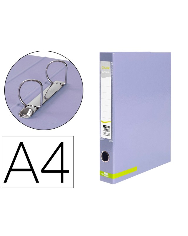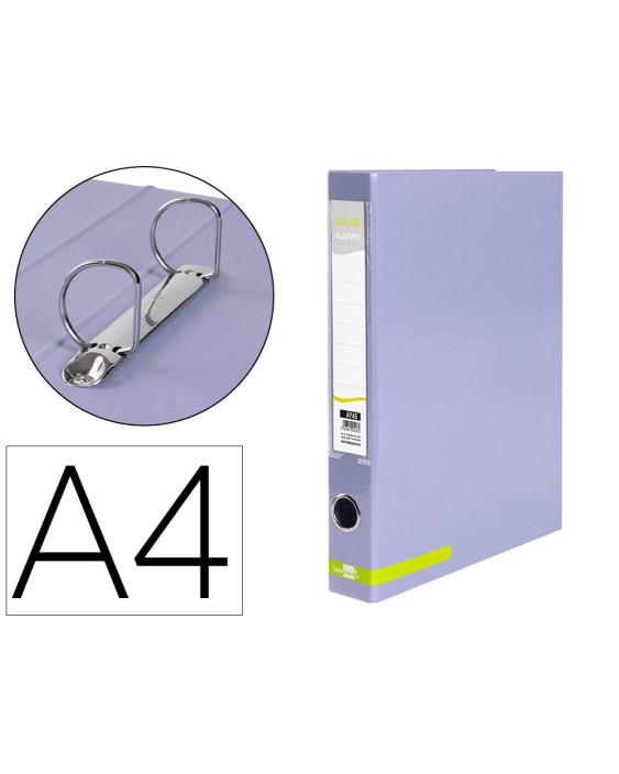 Carpeta de 2 anillas 25 mm mixtas liderpapel a4 forrado color system con ollao y tarjetero lavanda