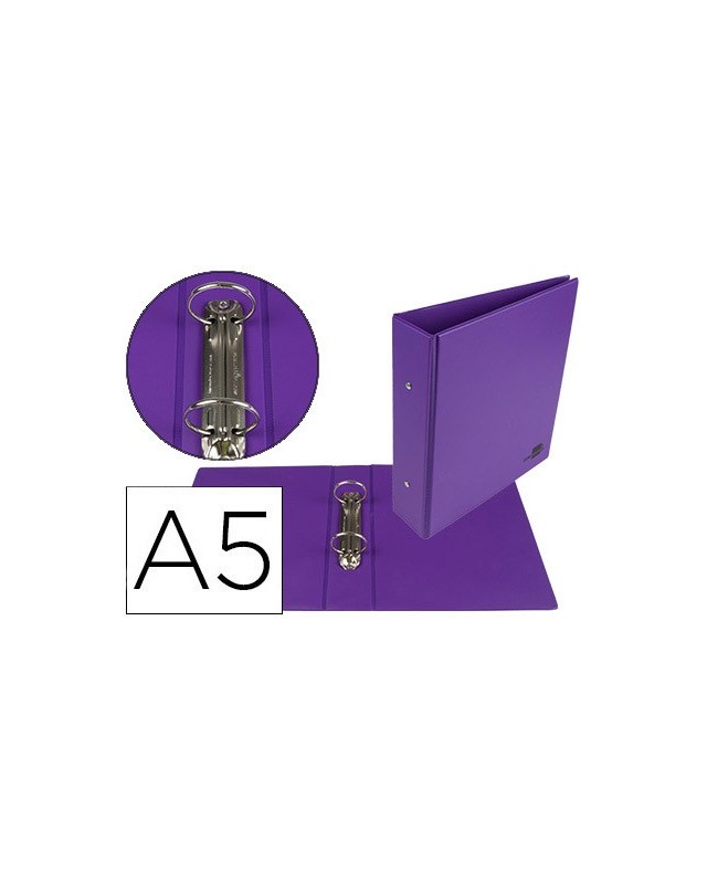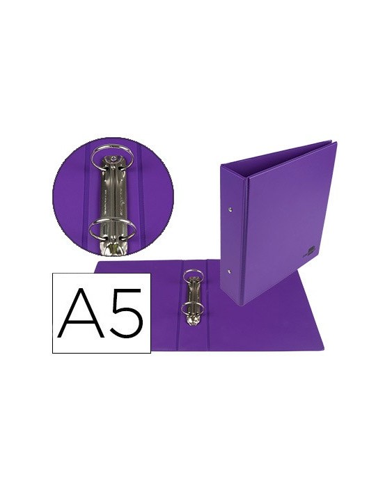 Carpeta de 2 anillas 40 mm redondas liderpapel a5 carton forrado pvc violeta
