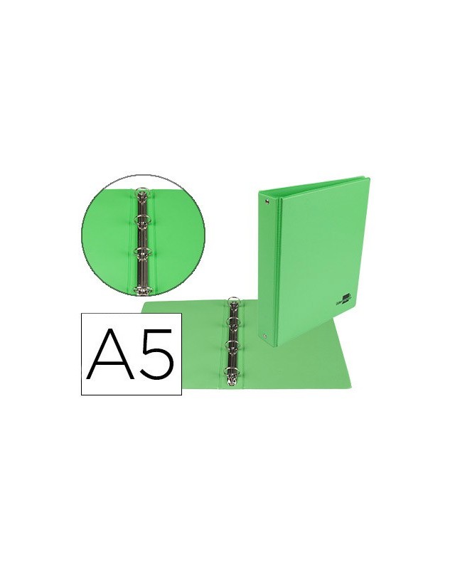 Carpeta de 4 anillas 25 mm redondas liderpapel a5 carton forrado pvc verde