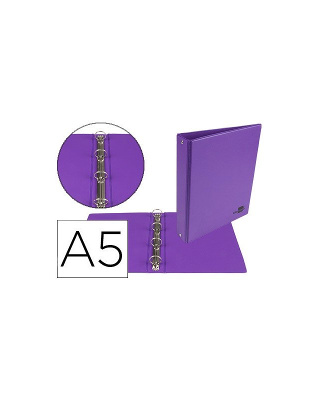Carpeta de 4 anillas 25 mm redondas liderpapel a5 carton forrado pvc violeta