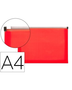 Carpeta dossier liderpapel a4 cierre de cremallera rojo translucido
