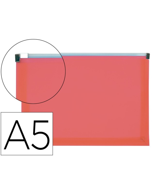 Carpeta dossier liderpapel a5 cierre de cremallera rojo translucido