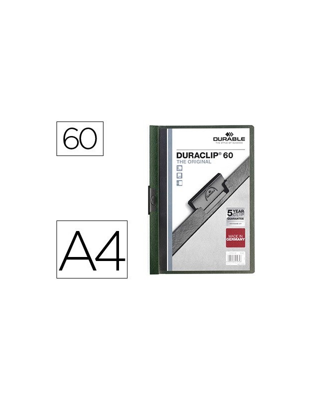 Carpeta duraclip dossier pinza lateral verde oscuro capacidad 60 hojas