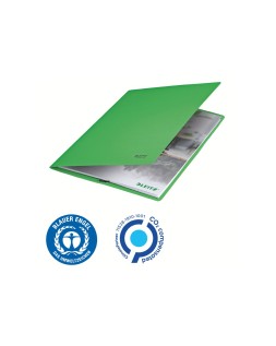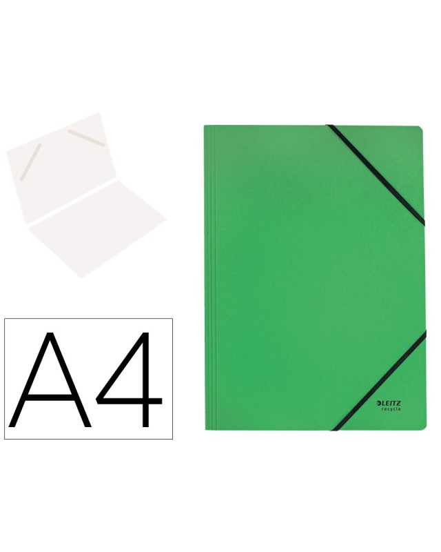 Carpeta de cartón llamativa y de primera calidad. Uno de los tipos de carpeta más utilizadas para la protección y el transporte de documentos. Con gomas en las esquinas para evitar que los documentos se salgan. Fabricada con cartón 100% reciclado, neutro para el clima gracias a la reducción y compensación de CO2, 100% reciclable y con certificación medioambiental BlueAngel. Esta robusta y práctica carpeta con gomas complementa perfectament e otros productos de la gama Leitz Recycle y está hecha para durar. Producto de papelería ecológica, moderno y contemporáneo que quedará genial en c