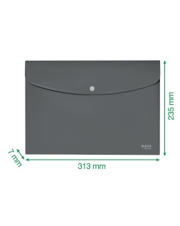 Sobre para documentos de polipropileno llamativo y de primera calidad parauso diario en la escuela, la oficina y el hogar, con cierre de botón para evitar que los documentos se salgan. Fabricado con un 80% de plástico rec iclado, neutro para el clima gracias a la reducción y compensación de CO2,100% reciclable y con certificación medioambiental Blue Angel. Este robus to y práctico sobre para documentos complementa perfectamente otros productos de la gama Leitz Recycle y está hecho para durar. Producto de papelería ecológica, moderno y contemporáneo que quedará genial en casa y en la of